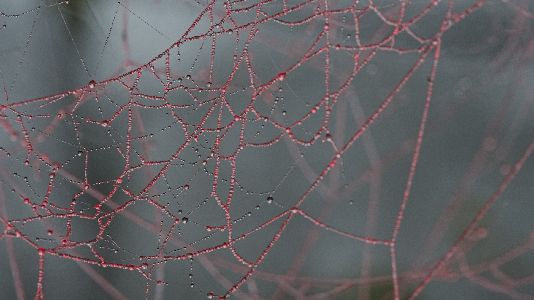 Spider web + freezing fog + flash + red gel.