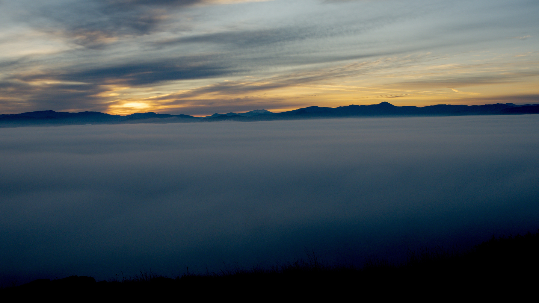 As I’d hoped, the summit of Mount Pisgah was above the valley fog, and I took photos in the dawn light until my fingers started hurting too much to keep going and I had to get back to hiking to warm up.