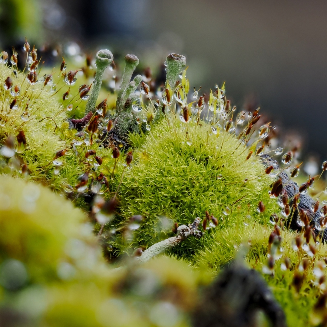I love the way each little mosstronaut is wearing its own tiny water droplet helmet.