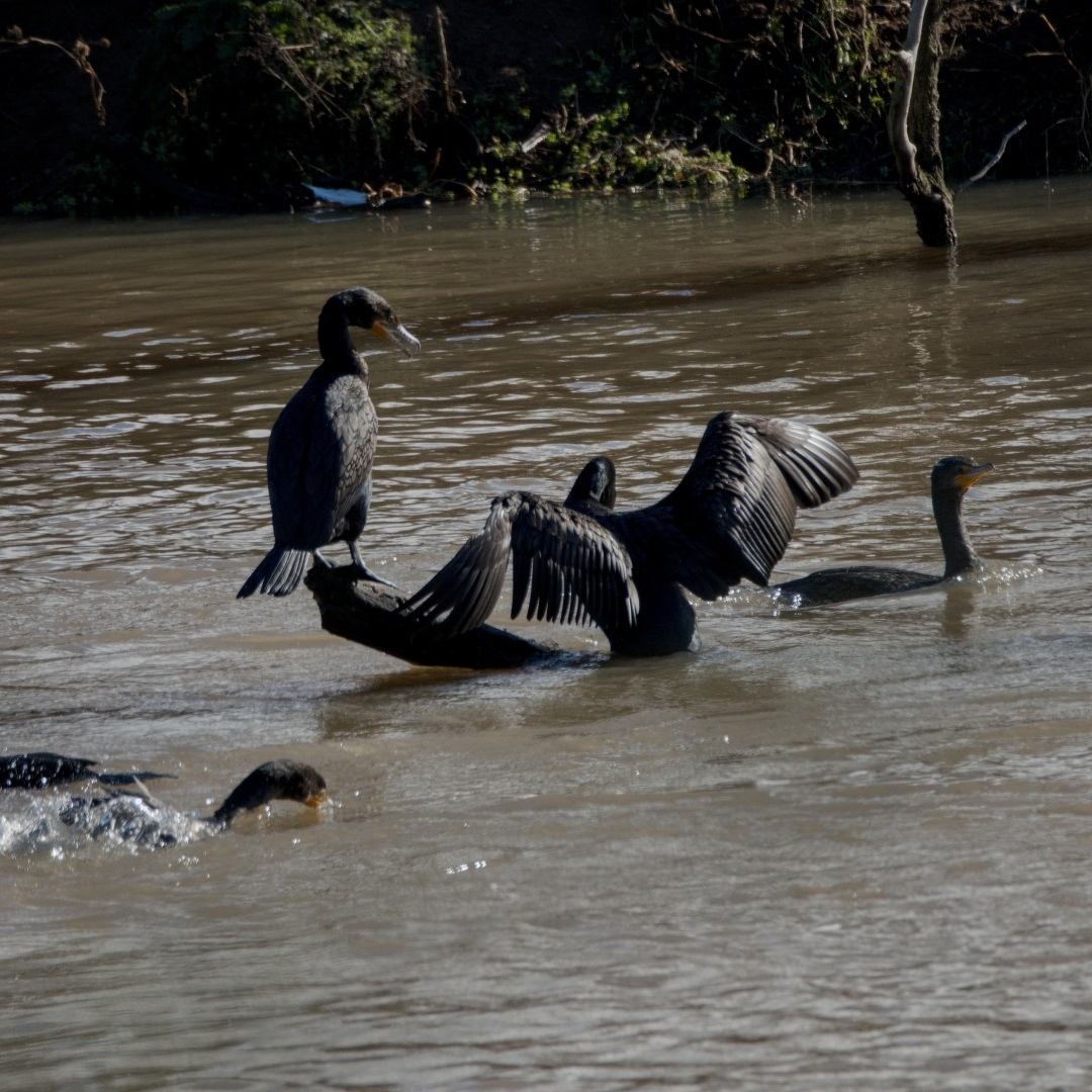 Cormorants floricking in the Willamette River.